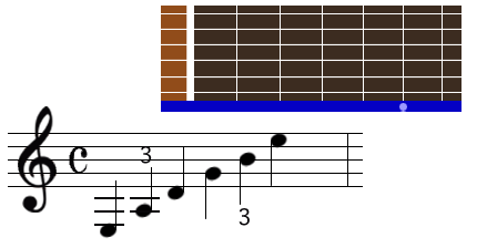 | ヒント コードを表示する時には五線の上にほかの音符のじゃまにならない所に表示されます。 |